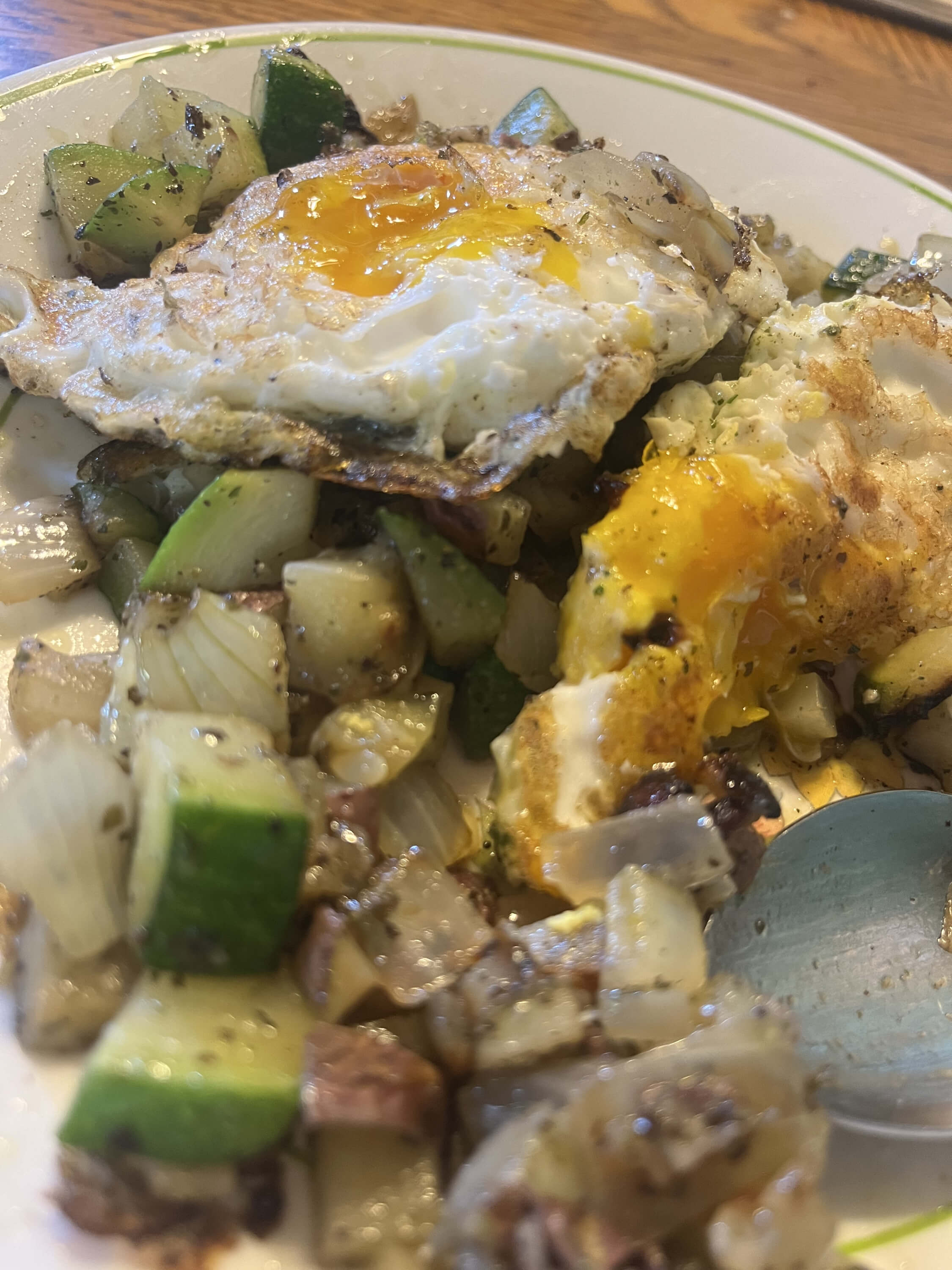 That brings me to another point, meal planning. When we meal plan it makes it easier to stick to our goals. Knowing what we’re eating and for me what I’m feeding the kids and what I’m avoiding when I feed my kids. For example, I make my own whole wheat sour dough bread. That’s what I feed to my kiddos. I’m choosing for this challenge to not eat as much. So, for egg sandwiches the other morning, I planned to just put my fried eggs over the leftover millet, along with some fried onions and peppers. Let me tell you, it did not disappoint in the least!