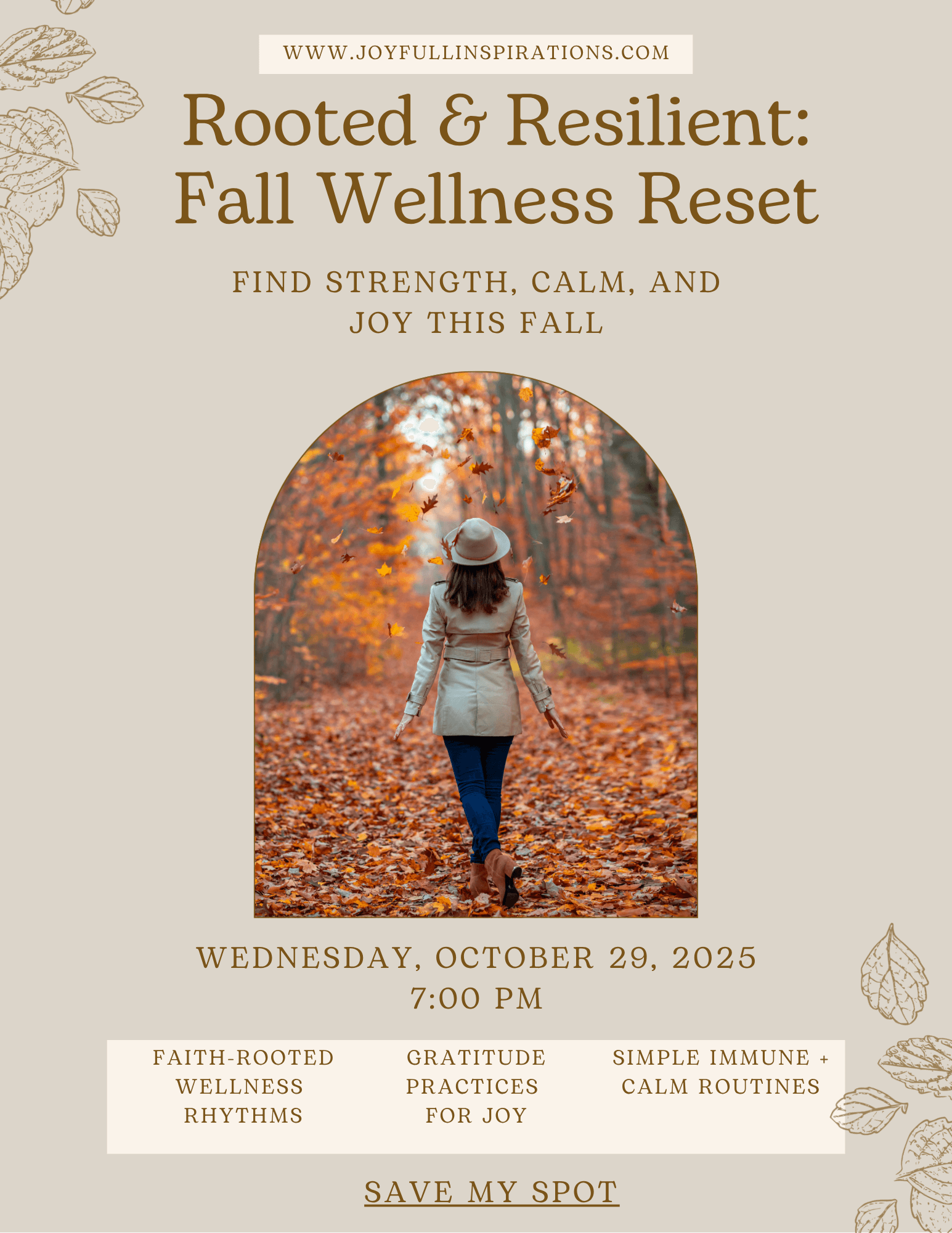 You’ll leave with a doable fall routine, a reset for your body and spirit, and encouragement to root yourself in joy as the holidays approach.