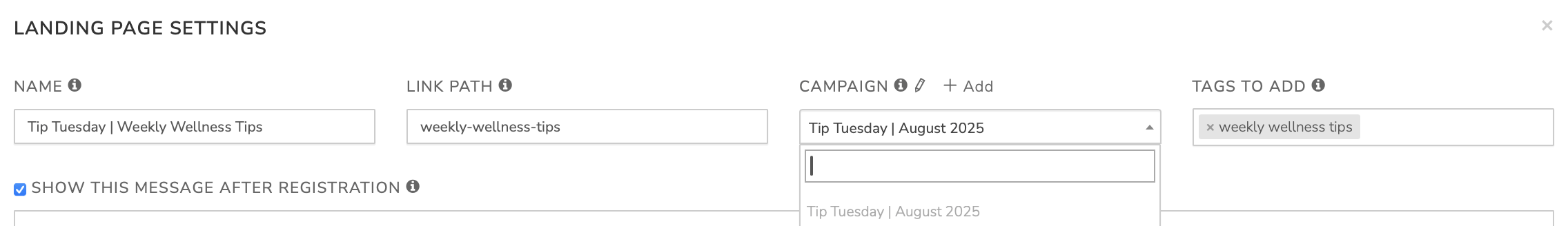 Filter your contacts for the “weekly wellness tips” tag (or whatever tag you're using on your landing page).