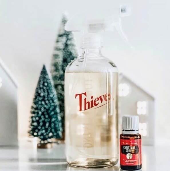 I like to add CHRISTMAS SPIRIT to my cleaner. I always add two capfuls of Thieves Household Cleaner to 16 oz of water + then add 15 drops of Christmas Spirit. I have a clean, safe, effective cleaner that smells like a North Pole cleaner! Try it and tell me if you like it.