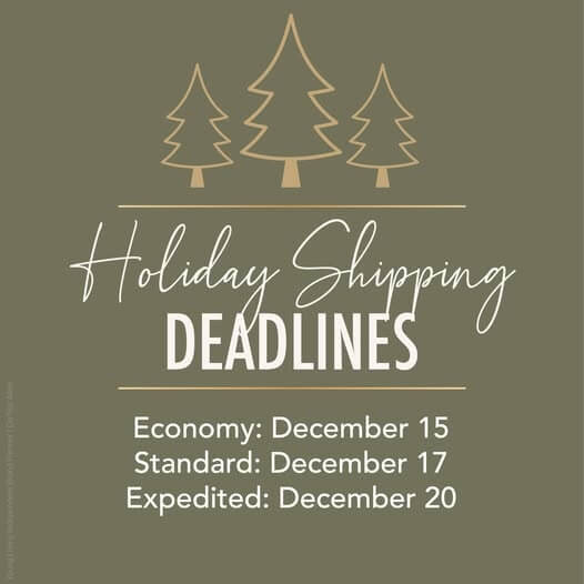 As you finish your holiday shopping, take note of the Holiday Shipping Deadlines!