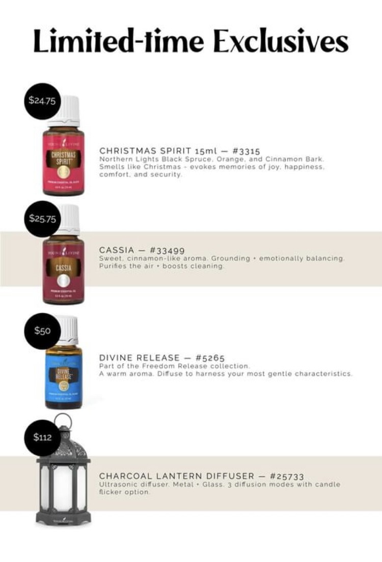 You are receiving this communication because you are in our Young Living group, this is for education purposes only, this is not a solicitation. A Holiday Sale is upon us with some great deals for you to enjoy! Especially check out the diffusers, as supply lasts! I personally am so excited for the 15ml of Christmas Spirit, it’s the only oil I diffuse from November through January and it not only helps keep your Immune System healthy, it helps give you an emotional sense of security, calm and relaxation. Your home will smell like the Holidays without the dangers of candles!