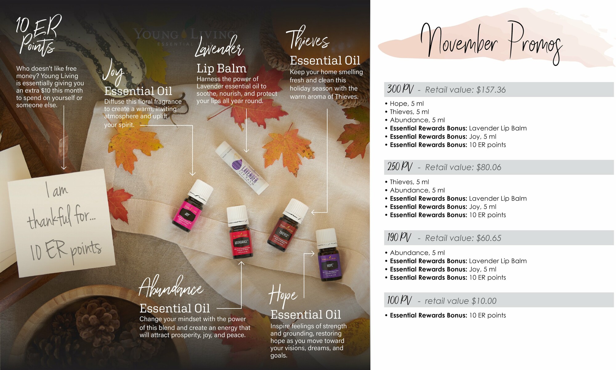 From November 1-15, you can get four different BOGOs {buy one, get one free deals} on your Essential Rewards order! Limit 2 per BOGO per account; Essential Rewards orders only.