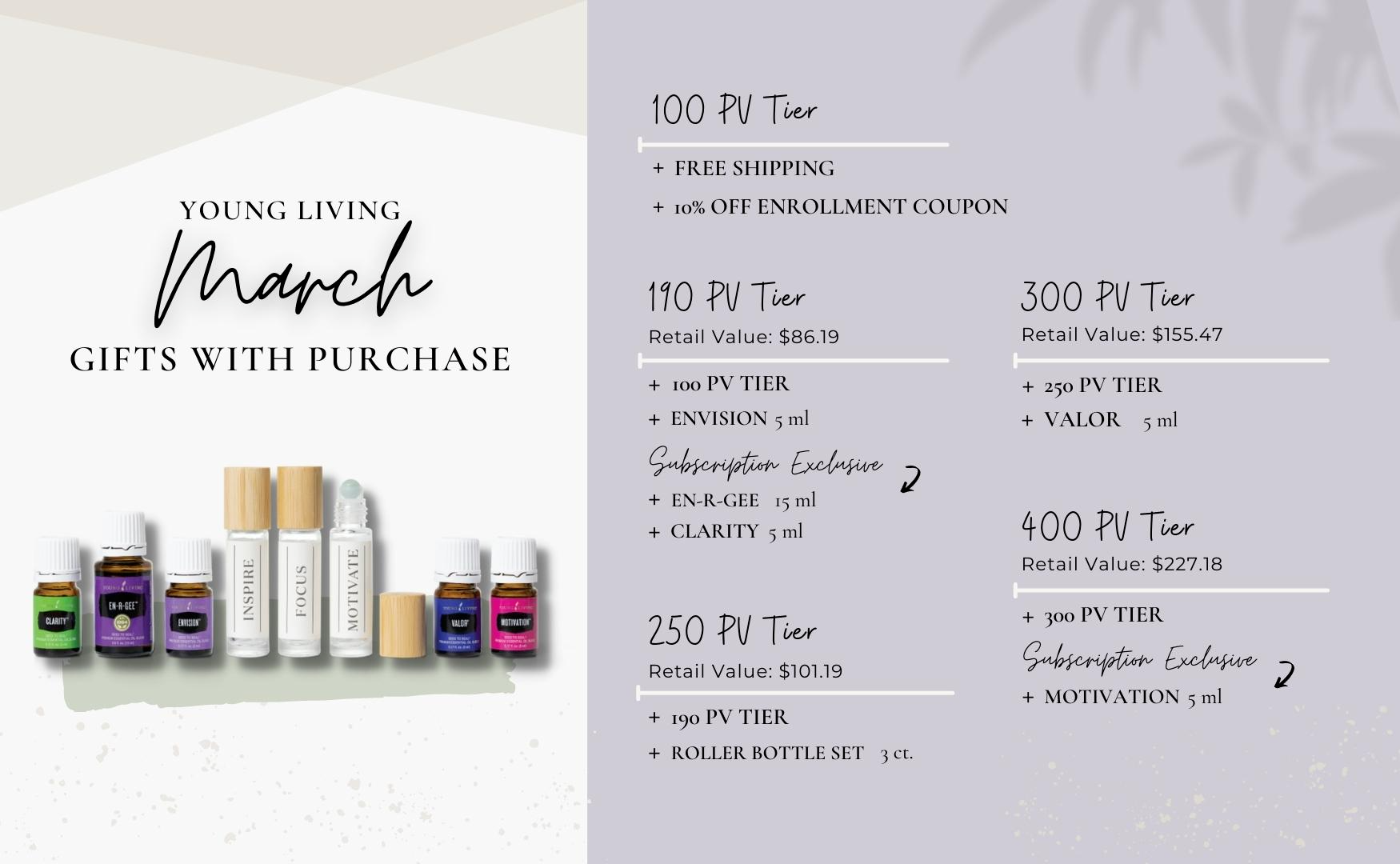 ![]() Hello, March!This month we get to welcome one of earth’s most delightful seasons - a season filled with rebirth, regrowth, rejuvenation, and renewal. Spring is a time where we celebrate our world and the beauty it brings about. Spring also comes with a little thing called pollen - and our noses don’t always enjoy that. Make this roller and keep it on hand; you never know when you might need it! ![]() ::::::::::::::::::::::::::::::::::::::::::::::::::::::::::::::::::::::::::::::::::::::::::::::::::::::::::::::::::::::::::: Monthly Gifts with PurchaseWhen your order hits one of these PV levels you will receive the corresponding products for FREE! Look at everything you get for free when you hit 400 PV! ![]() *Receive the Subscription Exclusives when your order is placed through the monthly subscription program, which is the best way to save money and support your health. If you need more details on this, let me know! Recipes Using Your Monthly Gifts ![]() |