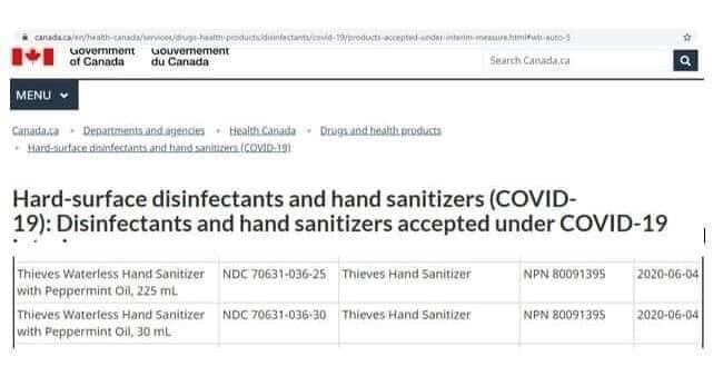 This is great news and I use nothing else but Thieves. I thought you would appreciate knowing what Health Canada thinks of our product.