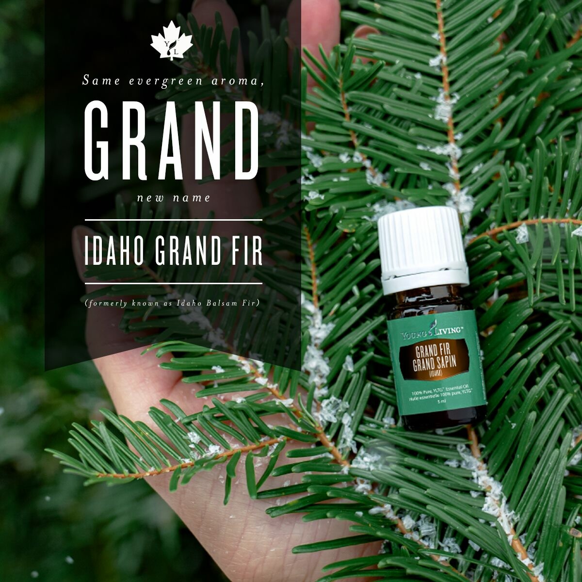 Formerly known as Idaho Balsam Fir, this Young Living fan favourite has a new name: Idaho Grand Fir! The oil, aroma and benefits are unchanged, offering a woodsy, refreshing aroma reminiscent of a freshly cut evergreen tree.